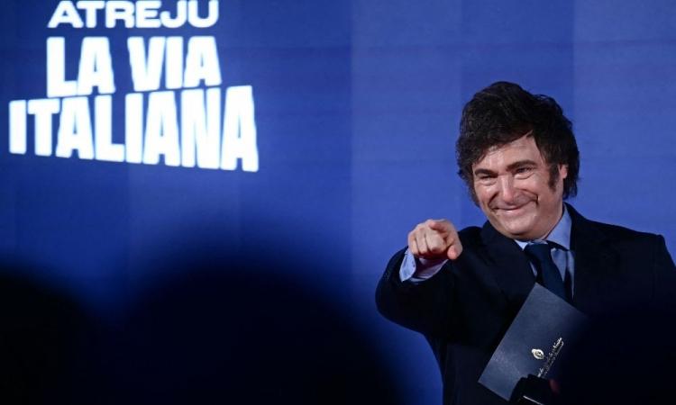 Presidente da Argentina, Javier Milei, participa da reunião política de Atreju organizada pelos jovens militantes do partido italiano de direita Irmãos da Itália