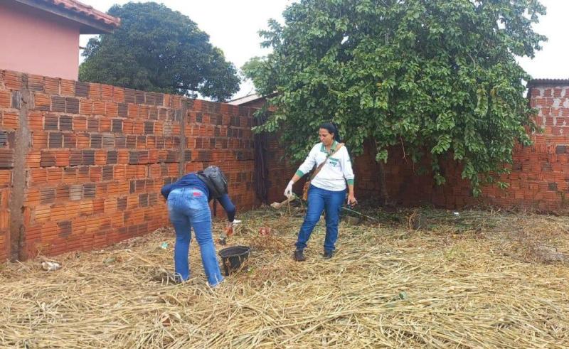 Agentes de saúde estão visitando todas as casas e comércios, e vistoriando terrenos baldios, para eliminar possíveis criadouros do mosquito e orientar os moradores sobre como combater a Dengue.