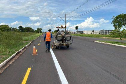 Após recapeamento, trecho da Avenida do Balneário recebe nova sinalização de trânsito