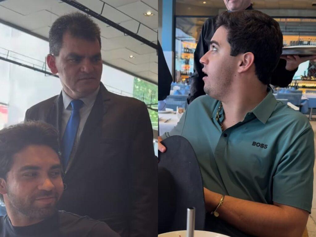 Garçom tenta comprar chapéu de Natanzinho Lima e surpreende Safadão em churrascaria