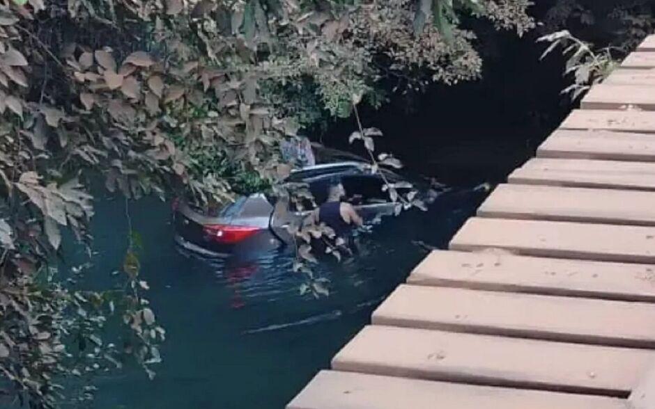 Carro despenca de ponte e família sobrevive no MS