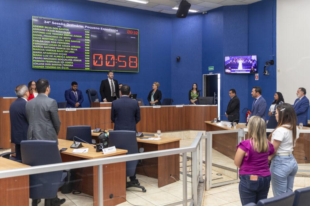 Durante a manhã desta terça-feira (10), os vereadores se reuniram para realizar a 34ª sessão ordinária de 2025. Na pauta, foram analisadas 30 matérias, sendo aprovados cinco projetos de leis (PLs), um projeto de resolução e 20 decretos legislativos. Estes, concedendo reconhecimento para pessoas que se destacaram em suas atuações em prol do desenvolvimento da cidade.