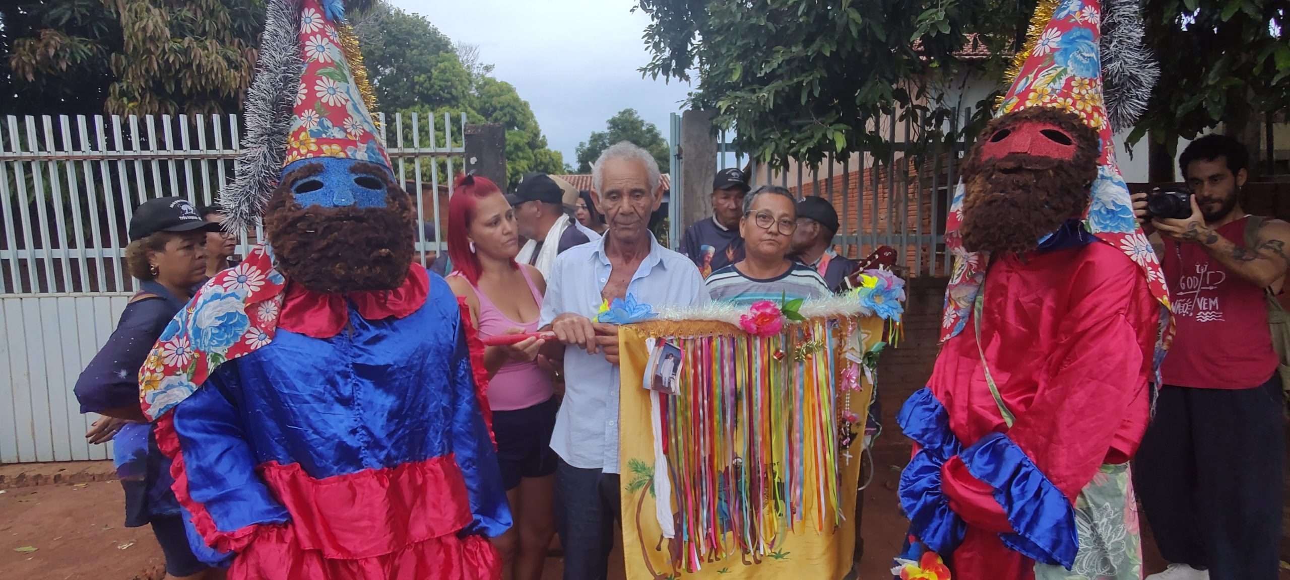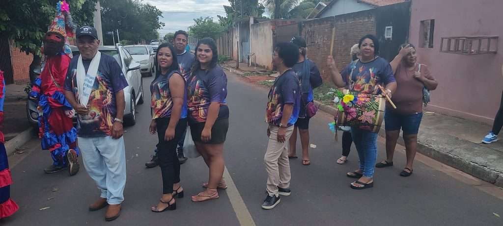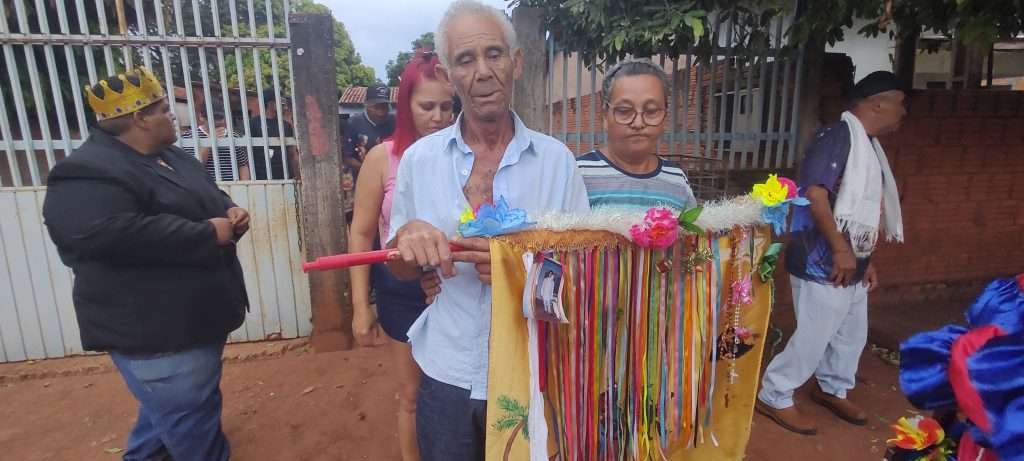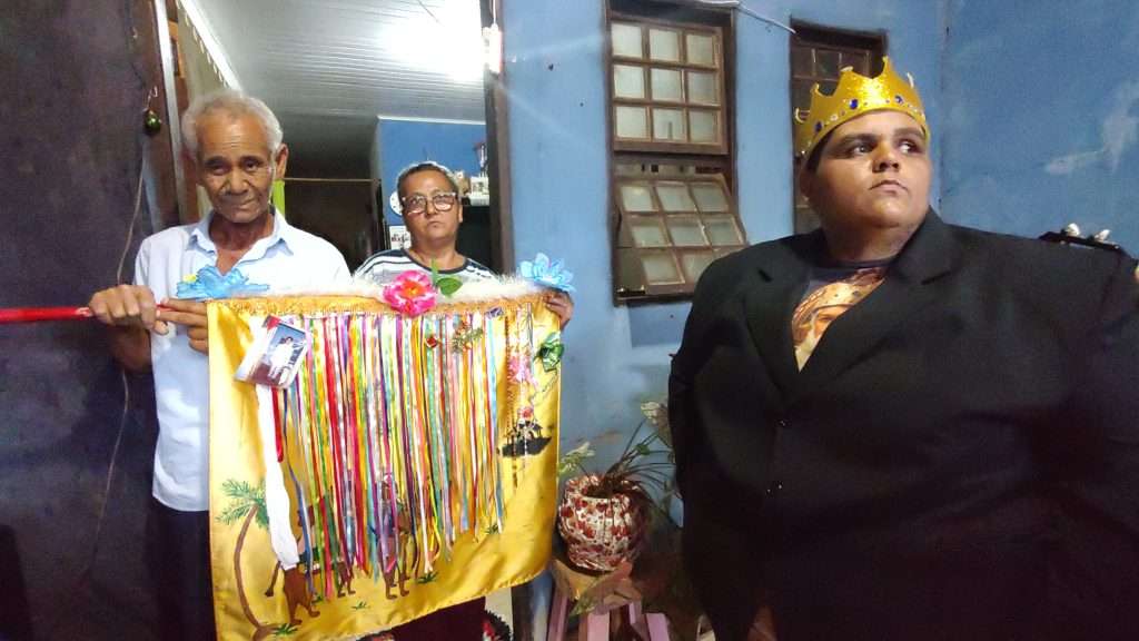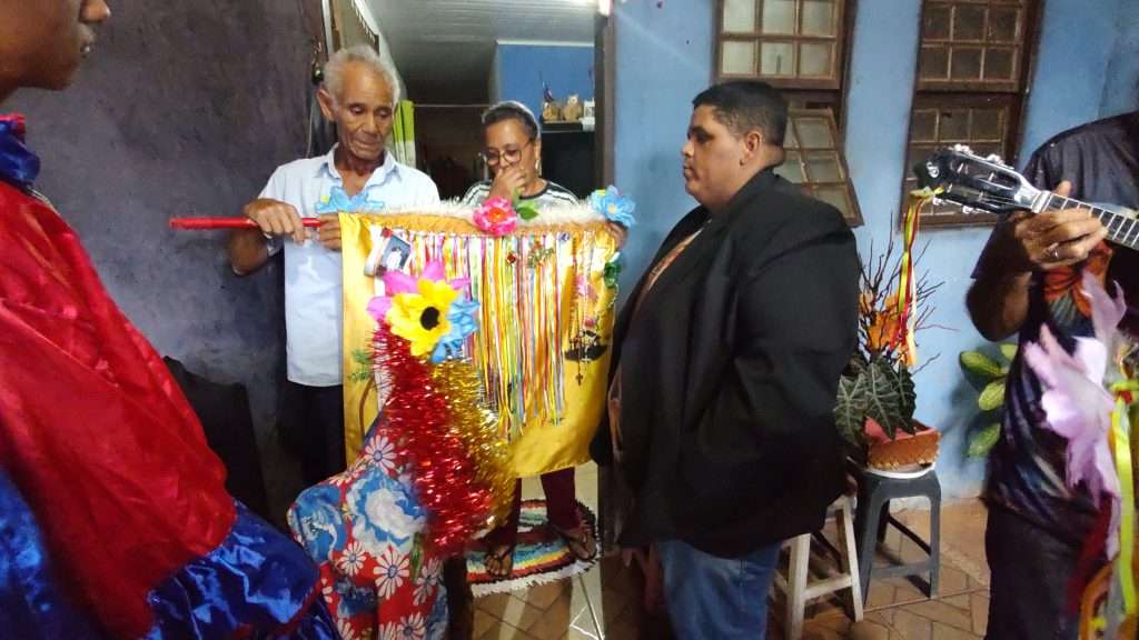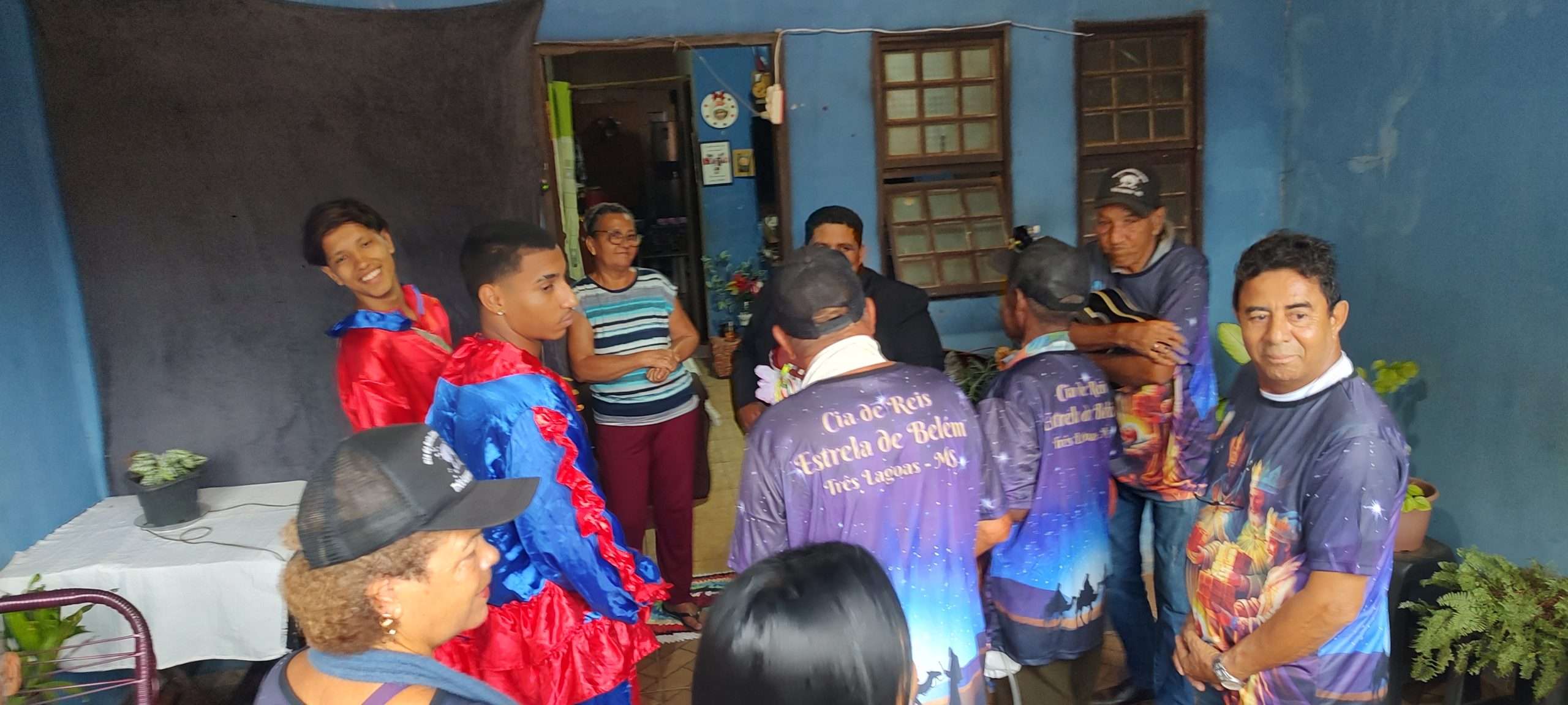 A CIA Folia de Reis estrela de Belém deslocaram até a casa da família da senhora Marli e Gilberto para pegar a bandeira que estava nesta residência.