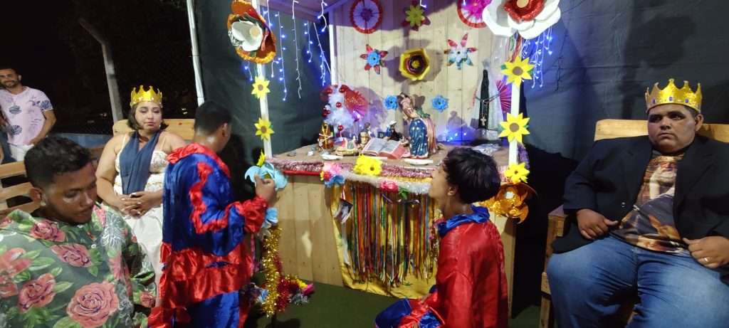 * A Bandeira: O estandarte, que carrega a imagem dos Reis Magos e da Sagrada Família, entra no recinto à frente do grupo após ter passado pelos três arcos. Está o Rei que vai resgatar a Rainha que está sentada ao lado do Presépio, a Bandeira ela é considerada sagrada e, no encerramento, costuma ser beijada pelos fiéis em sinal de devoção.
