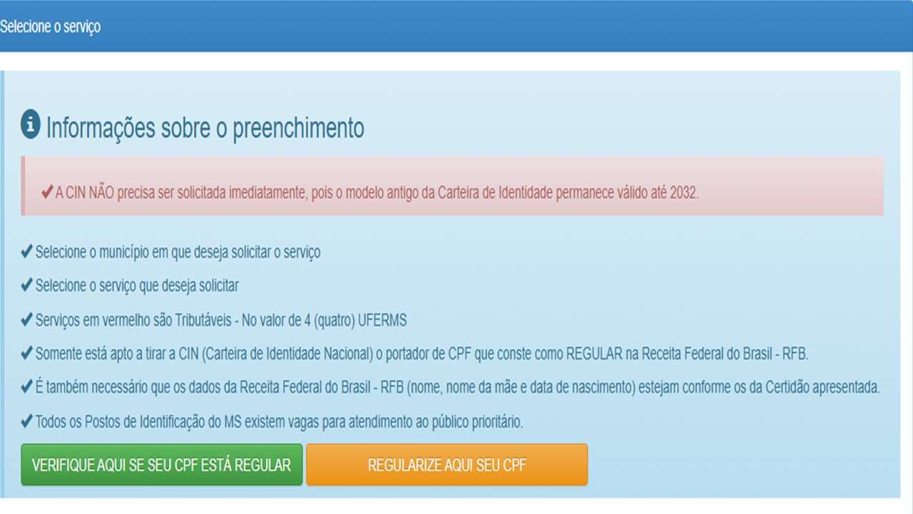O serviço não tem custo, mas deve ser agendado. Então siga o passo a passo para o agendamento em cidades do Mato Grosso do Sul.