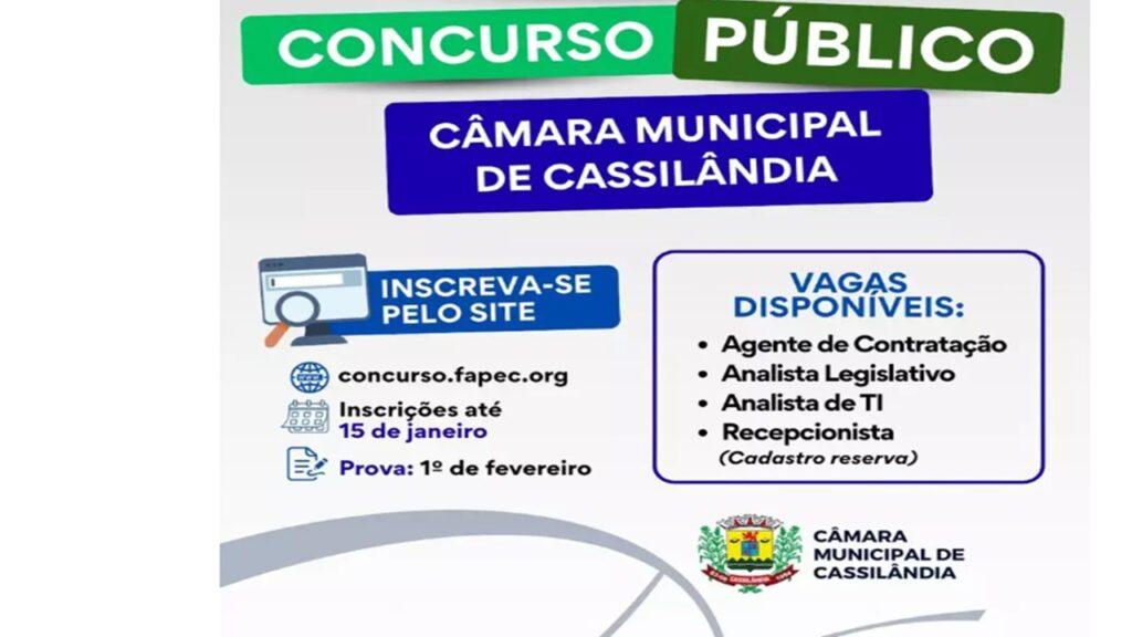 Câmara Municipal de Cassilândia está com Concurso Público aberto